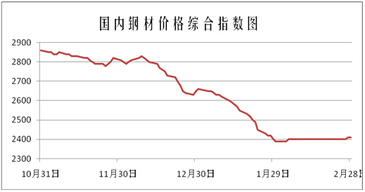 节后开市,国内钢材市场基本保持稳定运行态势,价格未见大幅涨跌。春节长假已经结束,但贸易商多数仍未正式开始营业,且受阴雨天气制约,市场交易仍然处于停滞状态。回顾节前市场,虽然各地商家纷纷持稳微涨,各钢材品种小幅走高,但受假日因素影响,成交寥寥,有价无市的格局明显。整体上看,2月份,市场价格均无大的变化,总体保持平稳运行。目前,商家心态相对平和,静待市场变化。